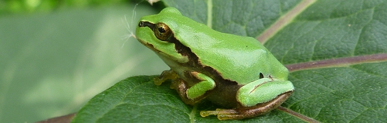 おいしいご飯を食べすぎておなかをさすっているケロちゃんです食べ過ぎには注意しましょう